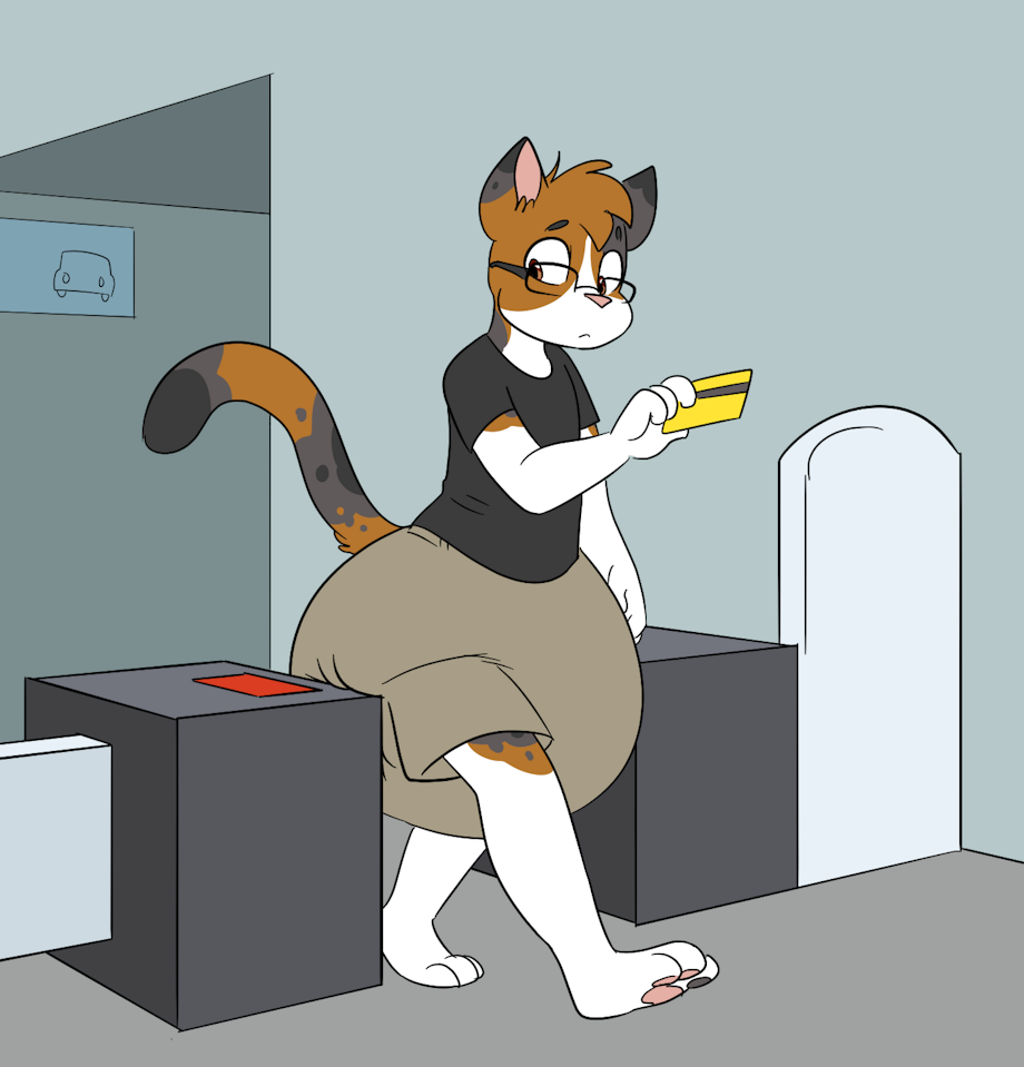 Did you honestly think your diaper would fit through the turnstile, you silly kitty?