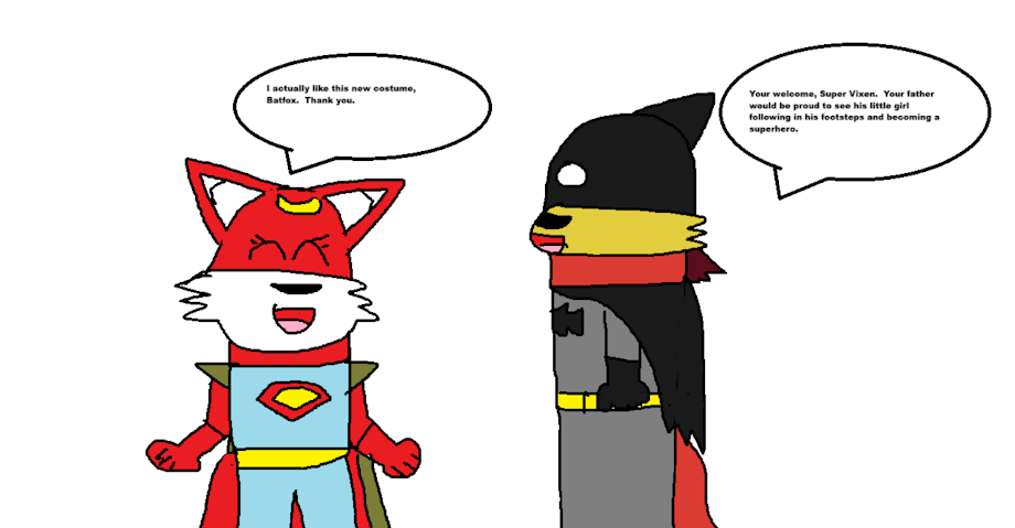 Sakura Crimson in her Injustice costume, as this pic reveals it is a gift to her by Batfox, a.k.a. Fiona Fox, as the vixen has been fighting her mother's Regime wearing the squirrel of steel's old costume. With this, Sakura can truly call herself a Super Vixen, following in the footsteps of the late Super Fox to restore freedom and become a new symbol of hope.