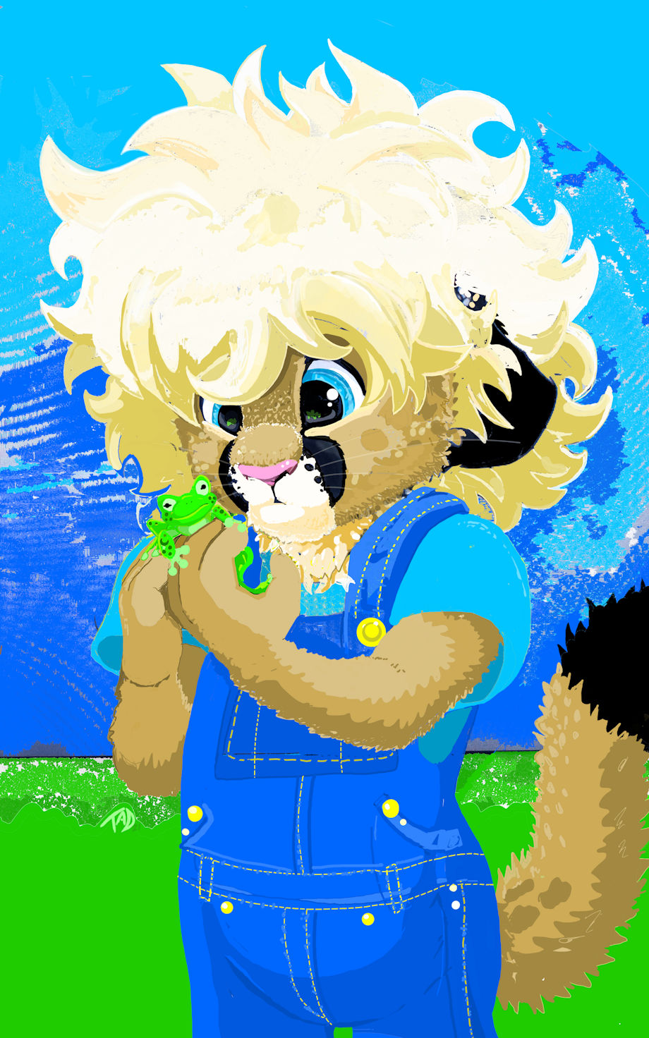 What a cutie! Tad's hair is so floofy, and the froggy is cute too! :D
