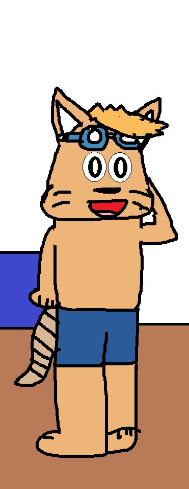 Sparkster waking up, having slept in only his boxer shorts and goggles.