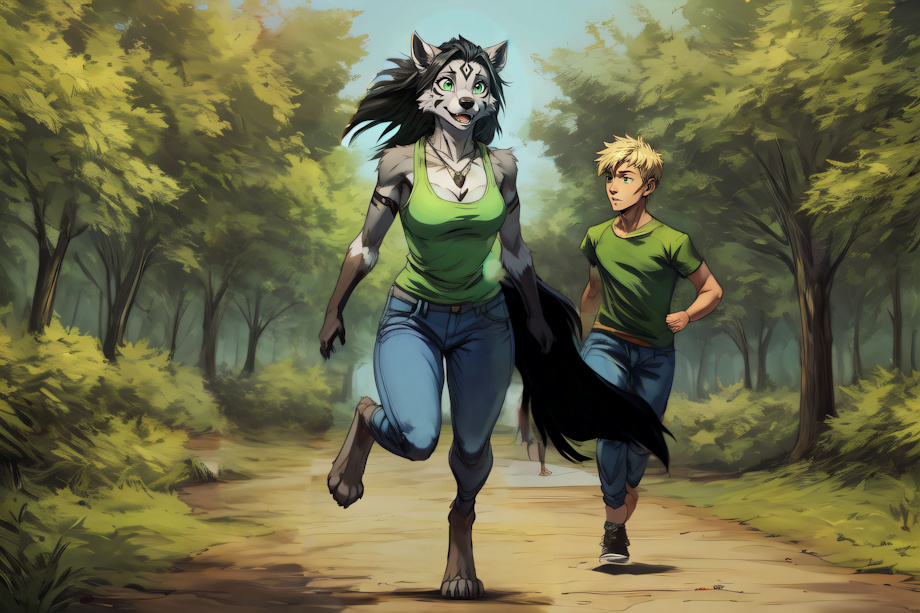Arthur glanced at the joggers and then back at Lash. "I mean, as long as you don't run into anyone, I'm pretty sure you—" Before he could finish his sentence, the wild girl had already taken off in a full sprint.