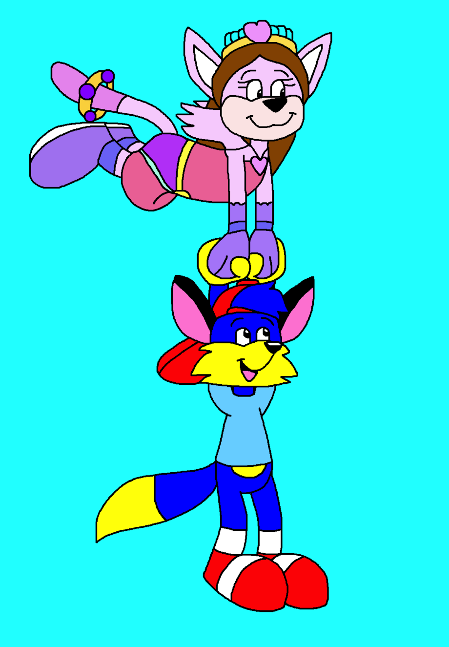 Saphir the Cat Hold Hands to Alex the Fox Flying in the Sky.
