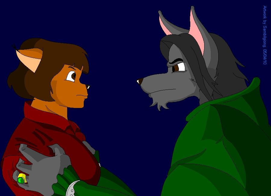 There, Fantaghirò is shocked to learn that the man she'd befriended in the forest is the feared Tarabas. Tarabas agrees to give Fantaghirò the Impossible Kiss if she will marry him. Fantaghirò agrees. Tarabas chains himself up to prevent himself from devouring Fantaghirò, and they kiss. The magic of the Impossible Kiss is captured by the Dark Witch, who promises to take it back to Romualdo. As Fantaghirò is preparing to marry Tarabas, she is told by Lighting and Bolt that the Dark Witch has broken her promise, and the power of the Impossible Kiss is waning. Tarabas agrees to let Fantaghirò go, if she will promise to return him. Fantaghirò promises and chases after the Dark Witch, but it is too late. Although Romualdo cannot be revived, Fantaghirò keeps her promise and returns to Tarabas. But Tarabas has had a change of heart and lets Fantaghirò go, realising that this is the only way to prove his love for her. A second Impossible Kiss is made when Tarabas kisses Smeralda, whom he has also grown to care for. This second kiss revives Romualdo, the pair are finally married, and they adopt Smeralda as their daughter. Fantaghiro stories where my favourite fairy tales of when I was a child and Tarabas was my favourite character. I decided to draw Fantaghiro (the cat-linx character) and Tarabas (the wolf character) in furry style in the moment when Tarabas offer his kiss to Fantaghiro in exchange for the promise of marrying him. Hope you will like it!