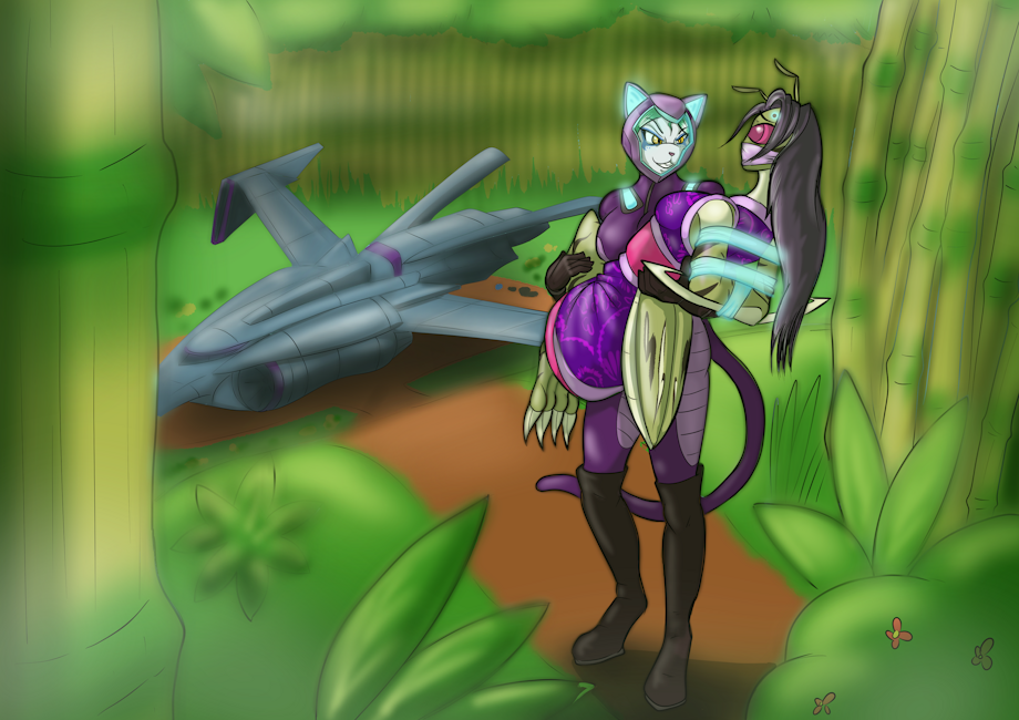 And unfortunately for the young mantis woman, infamous mercenary Tessa had been hired by interstellar criminals to kidnap her for just that. Tightly bound, gagged and a special device suppressing her psionic abilities, she was about to be whisked away to who knows where…