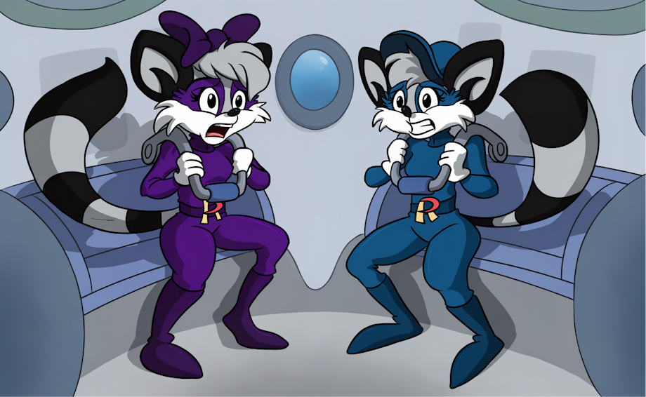 A commissionmade by Kumata of Judie and Cira the RaccToons stuck in an escape pod!