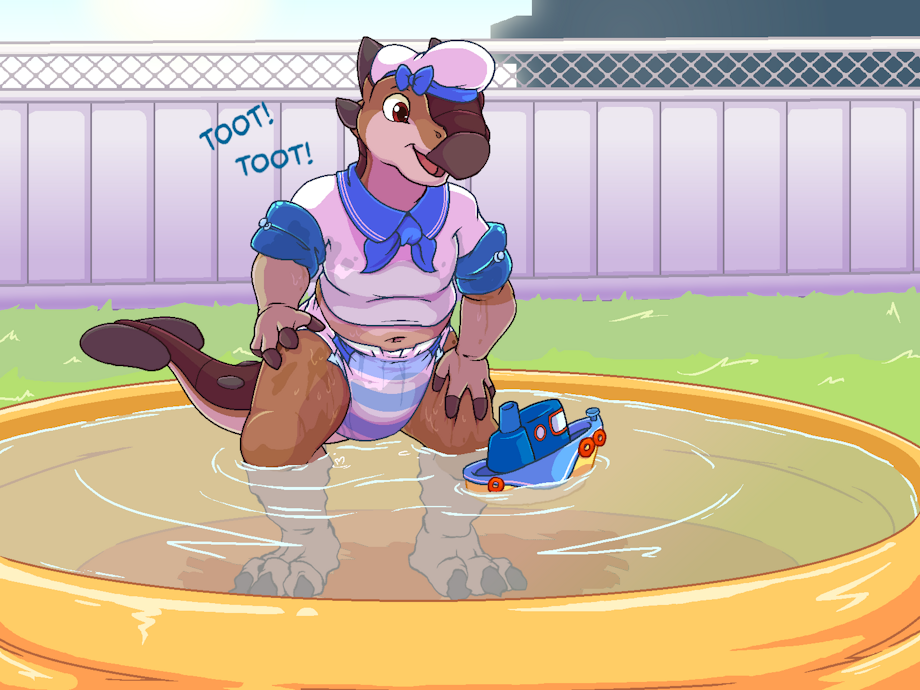 Toot Toot! And All Aboard! Clay having some fun in an outdoor inflatable pool whilst donning an adorable sailor outfit! He may not be able to swim yet, but he sure likes playing in water!