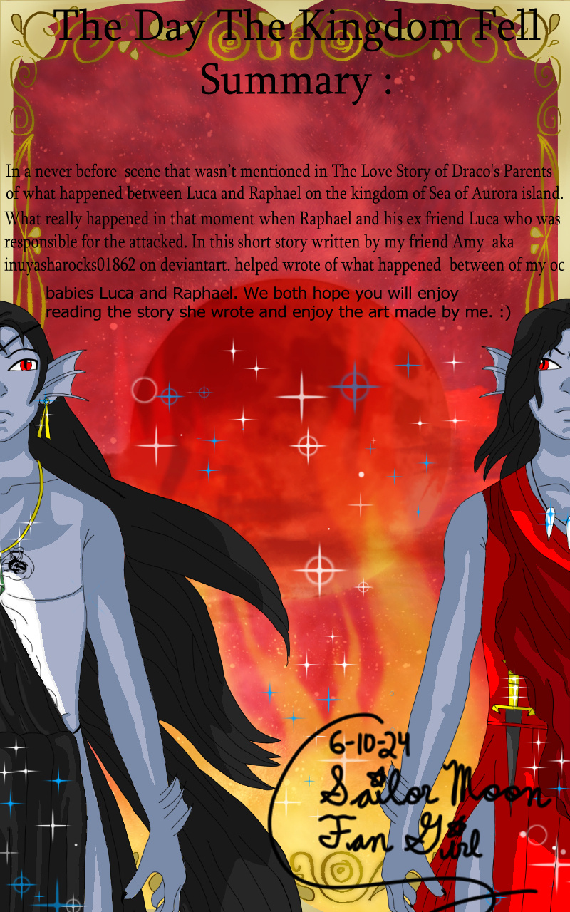 P.S. Thank you all so much for reading The Day The Kingdom Fell short story is written by my friend Amy and art is done by me. Here's a quick announcement as well my friend Amy is planning a future fan art of ocs babies Luca and Raphael from this story very soon and yes, she's giving me permission to reupload on my other socials and on deviantart on my first main one I will put the link in a journal post for her shout out on DA. Anyways I am very happy my friend Amy gave me permission to make it into a comic. Hope you are all very excited and thank you all for reading again. :)