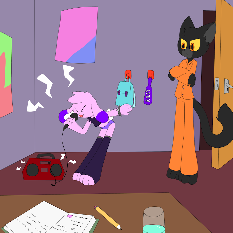 Riley decided to take a break from her studies by singing along to her favorite songs. But with such a racket, she was bound to wake up her dad sooner or later...