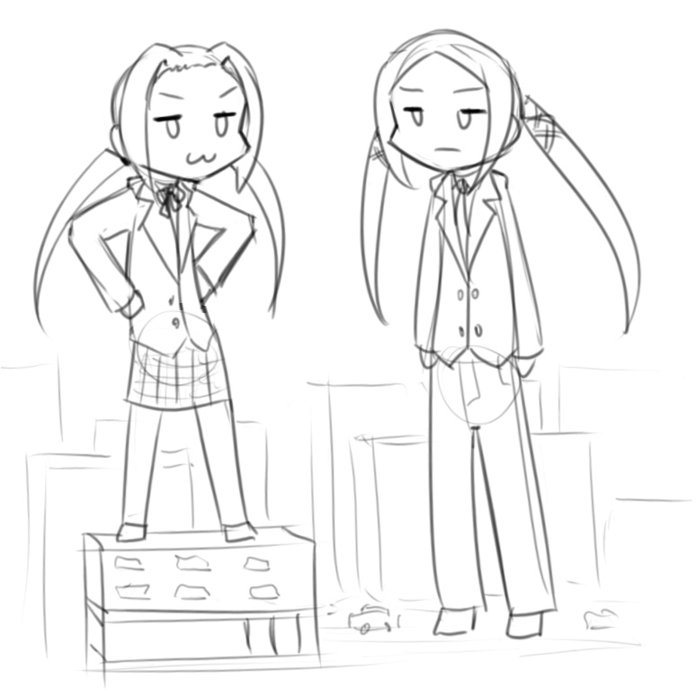 Hahahahahahaha They do look similar don't they! Suzu not winning despite the aid but still being smug about it is adorable. As is using a building to feel taller when she's already that "big". Still a shorty!