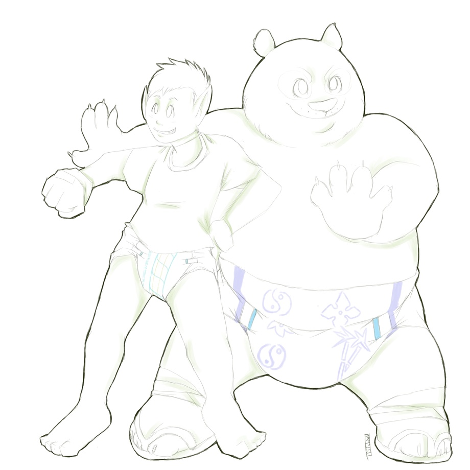 Fanart i did recently of Beast Boy and Po, my ideal crime fighting team in the ideal crime fighting attire (DIAPURRRSSS!!!)