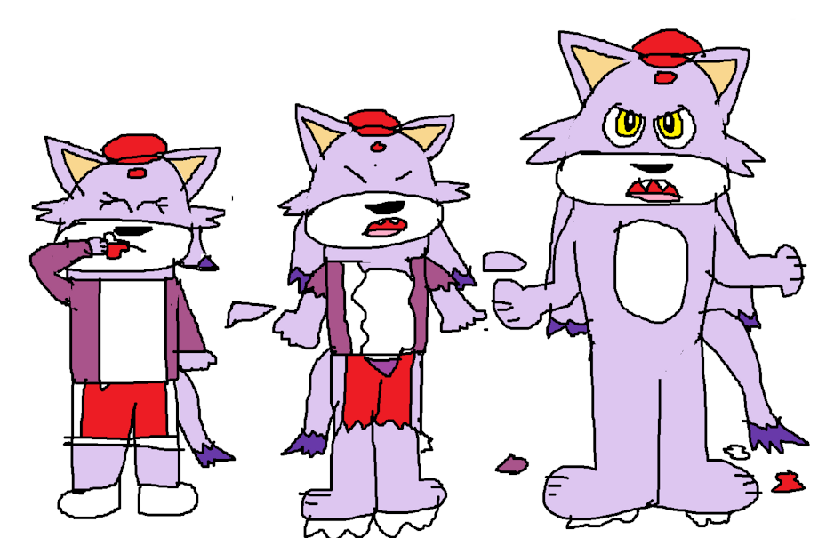Inkbunny exclusive. Blaze the Cat, as Julie from Zombies Ate My Neighbors, drinks the Monster Potion powerup and is turned into a muscular werecat, her clothes tearing away, leaving her in nothing but her baseball cap.