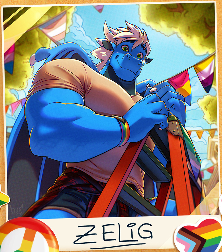 Being a pretty big dragon Zelig was happy to help hang up flags for his local pride fest.