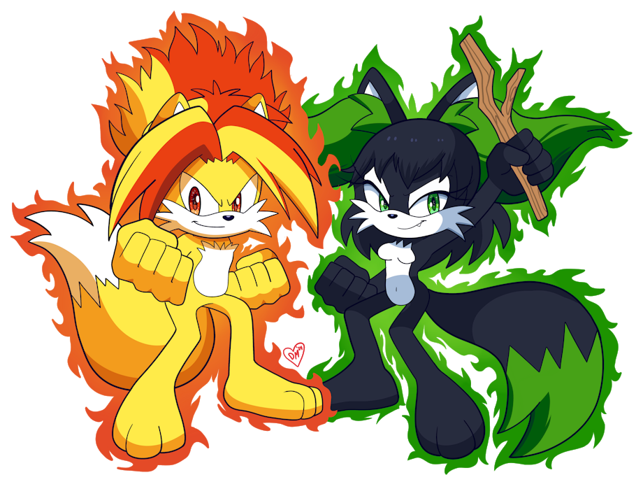 , with his characters Phoenix and his love Dawn going super together, readying to fight.