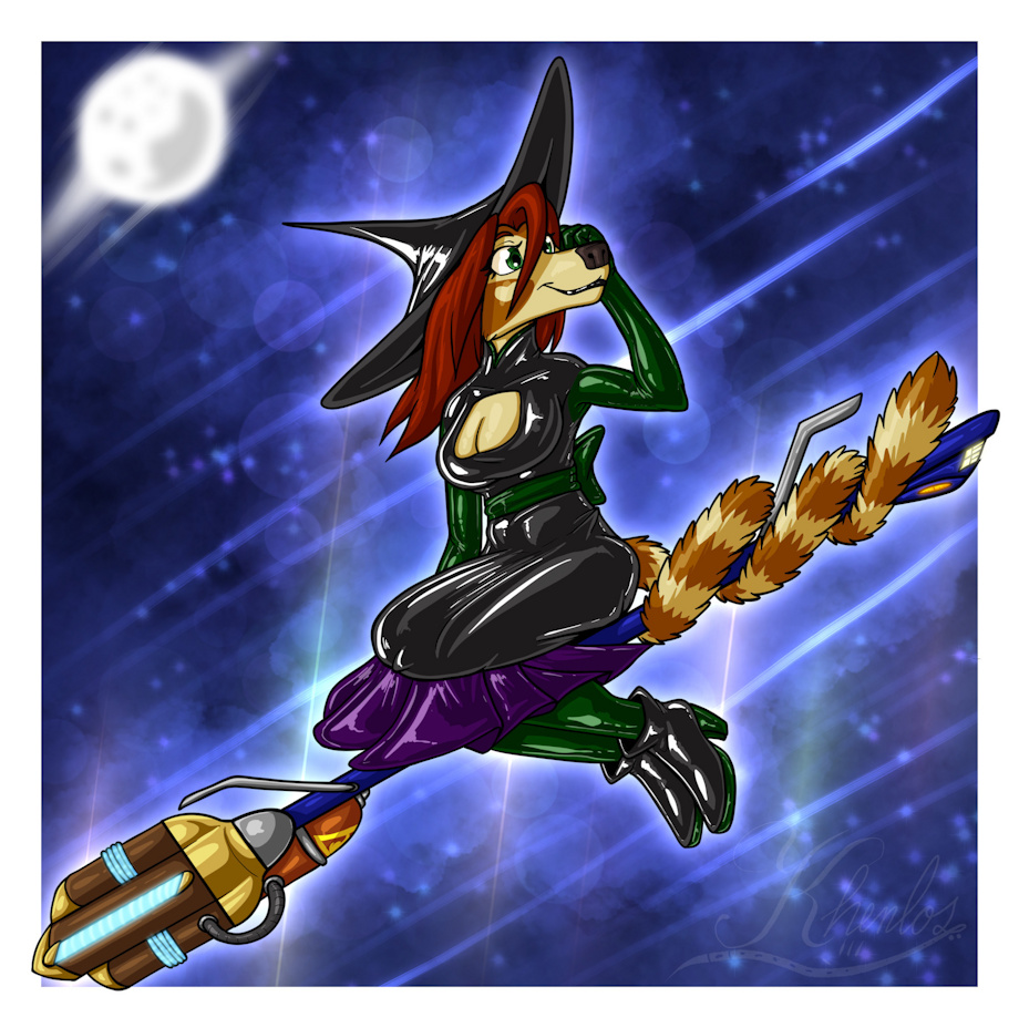 So here she is! A futuristic witch with dress and broom to show! A pretty nice Halloween picture I'd say! 🎃