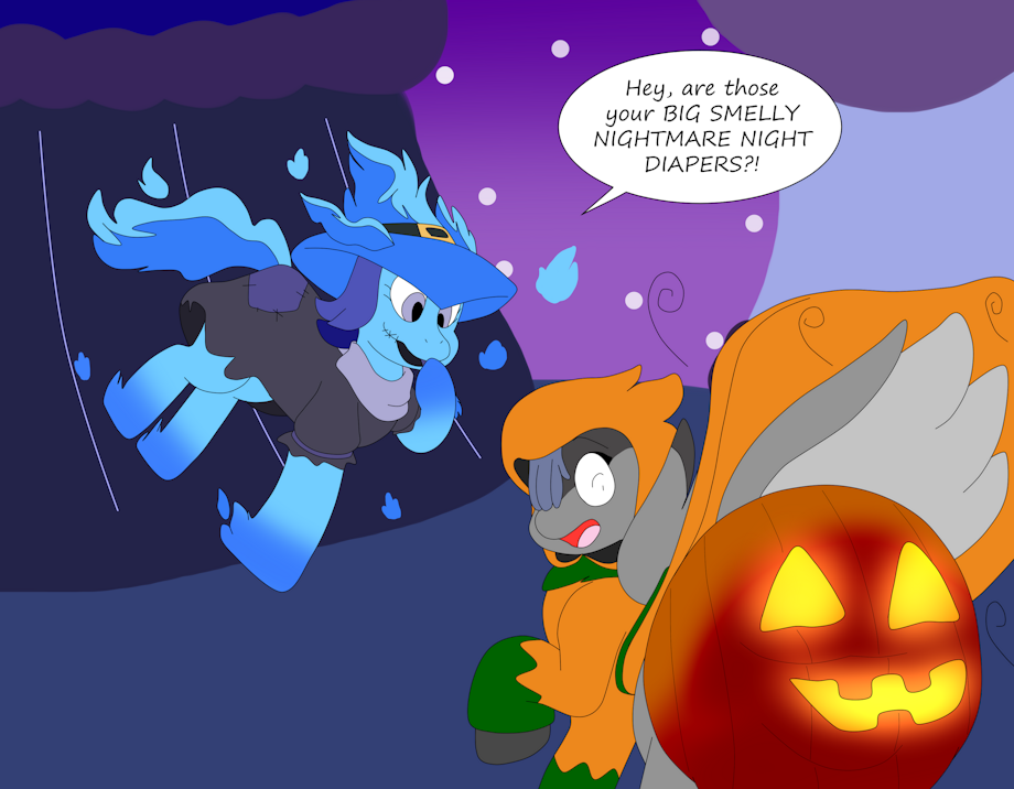 Apologies for the lateness on posting Nightmare Night images, but I've been finding myself under the weather for most of this spooky month, even now there's been a bit of a lingering cought which hasn't been great. Wanted to get some images posted up before the big night though, so here's the first, one done by AgumonOfAlchemy.