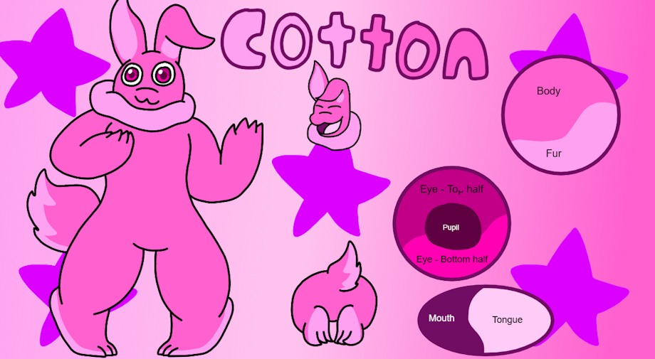 This fluffy little cotton ball is a little sassy, a little smug at times, but she's still a good friend. Cotton is 20 just a year under Bubbles, can jump really high, run really fast, and loves getting into tickle fights or just find an excuse to tickle her two friends Bubbles and Nebulae