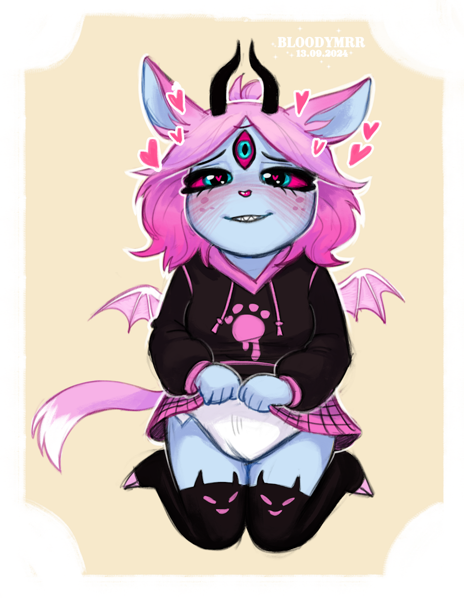 I wonder if this is her way of trying to… (actually I don’t know this character that well other-than she is an cringey, obsessives stalker for Blitzo but knowing her, I bet she just have found them more comfortable after wearing a diaper for a while).
