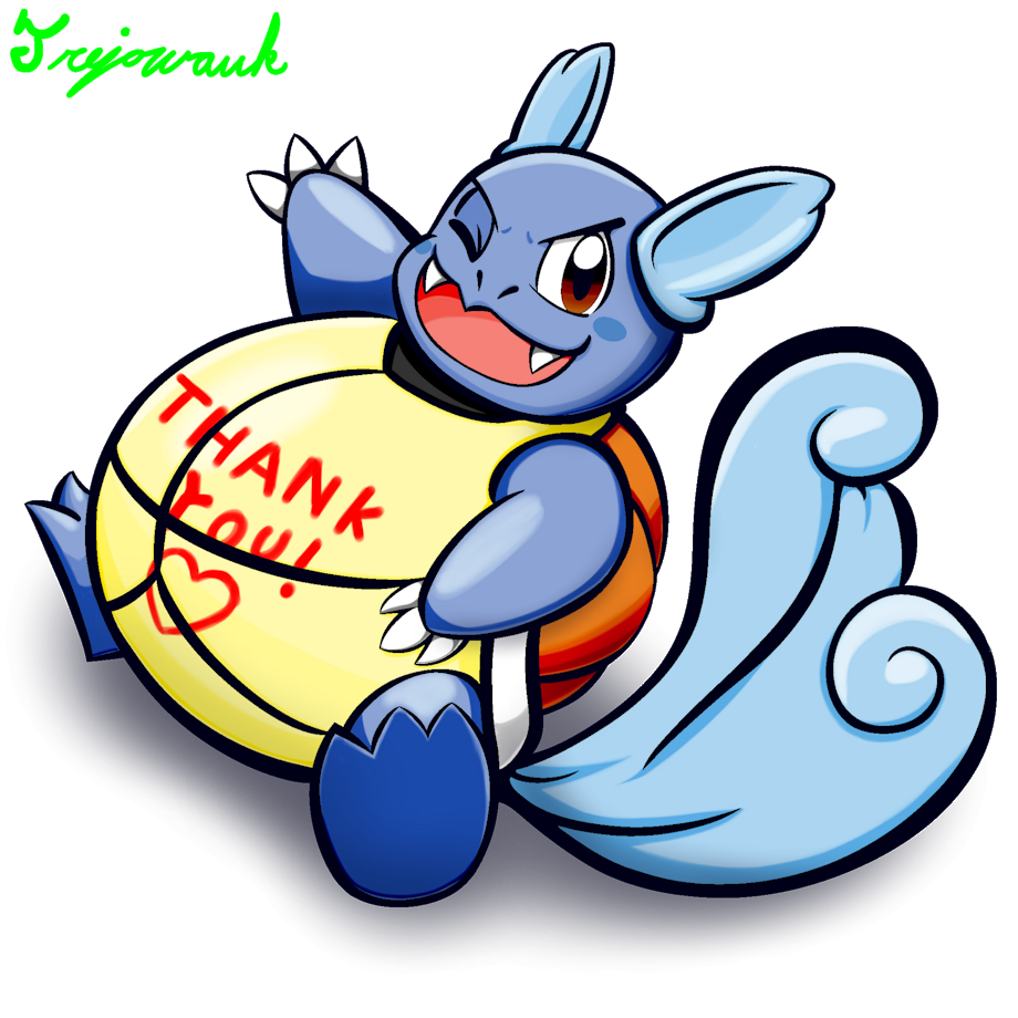 Wartortle wants to thank all of you! He even painted his belly with "THANK YOU! <3" to show how much he loves ya all for your support!