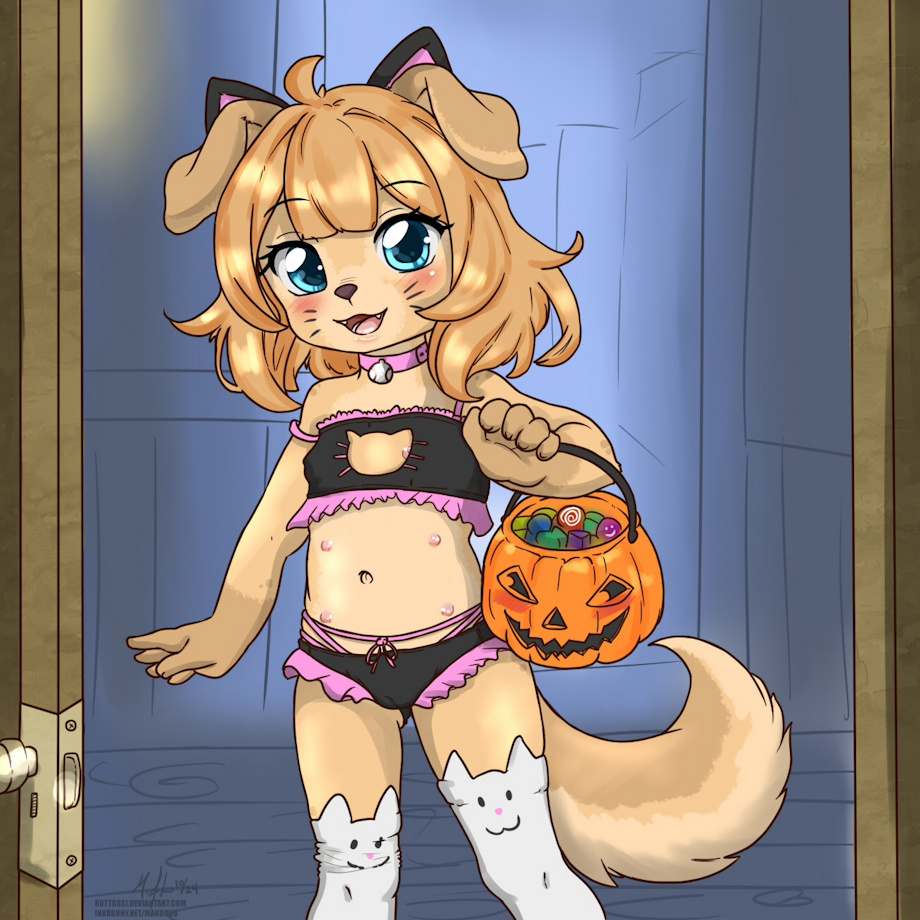 Since Bailey has been adopted into the Night family she has been looking for ways to connect with everyone. Since she is the long pubby in a groups of cats she has decided to become more cat like. And what better time to be like a kitty than Halloween? So help Bailey connect with the fam by giving her lots of candy!