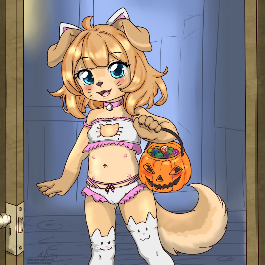 Since Bailey has been adopted into the Night family she has been looking for ways to connect with everyone. Since she is the long pubby in a groups of cats she has decided to become more cat like. And what better time to be like a kitty than Halloween? So help Bailey connect with the fam by giving her lots of candy!