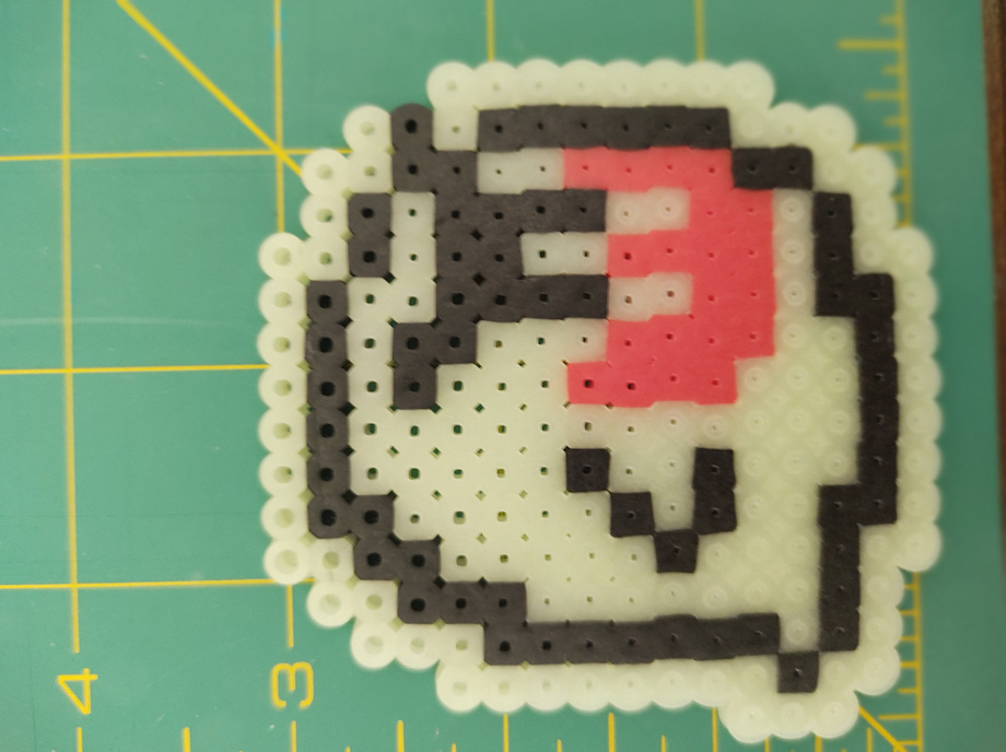 Perler of a 8 bit Boo from Super Mario Bros. 3 made with glow in the dark beads