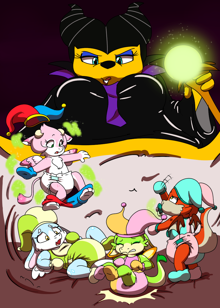 The Dragon Quartet had a plan, use the distraction of Halloween to get close to Titania. She had a soft spot for the holiday, even if a lot of her joy came from dressing up as villains and taking candy from babies. But Titania is not easily fooled. Before even having a chance to transform and fight her. Titania had captured quartet and shrunk them down to size with her magic staff, such fools she thought they were, so she dressed them appropriately as foolish jester as she stuffed them in her pouch one by one.