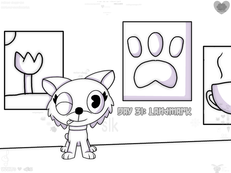For this day I thought of drawing Painty Doggy in her favorite place of interest, a gallery full of paintings, one of which was made by her 🐶🖼️..