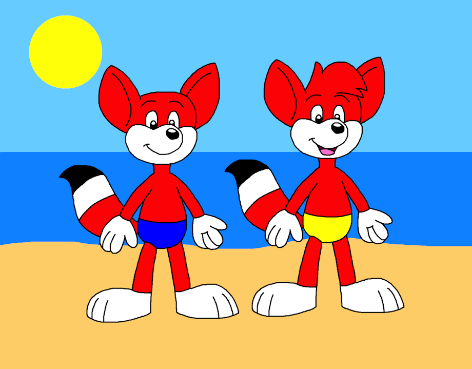 Fix and Foxi wearing a Speedos at the Beach in the Summer.