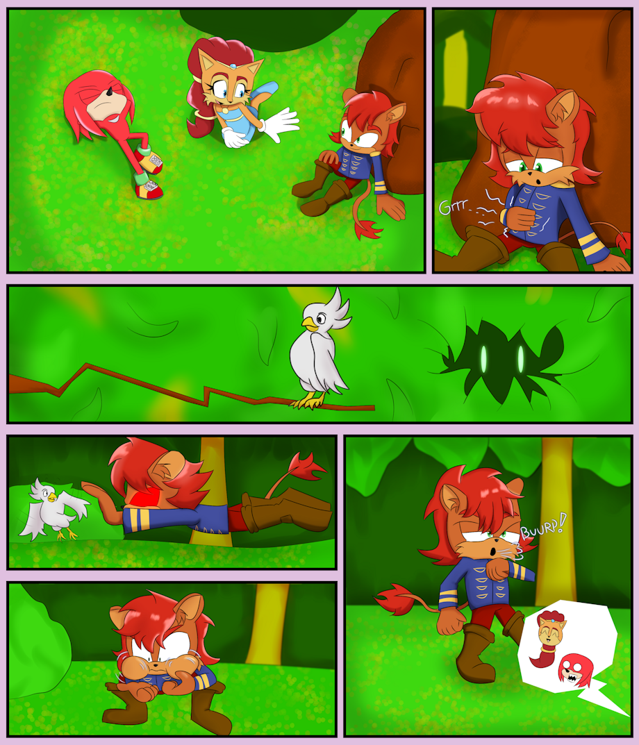 A diplomatic visit to the Angel Island and after the fight and quickly becoming friends of Klaue and Knuckles. Both become close as brothers and Sally is happy to controlling that chaos that would be a trainwreck between the two. There is a bird called Catweazle that constantly annoy Knuckles, but Klaue and his a deep hatred to birds something happen in the past, didn't like Catweazle, knowing that he is hungry, his predatory instincts took over as he hunted and ate Catweazle. Knuckles was more surprised that Sally let it happen, but she said that is a free pass and leave it that way, Knuckles in which does not question further.