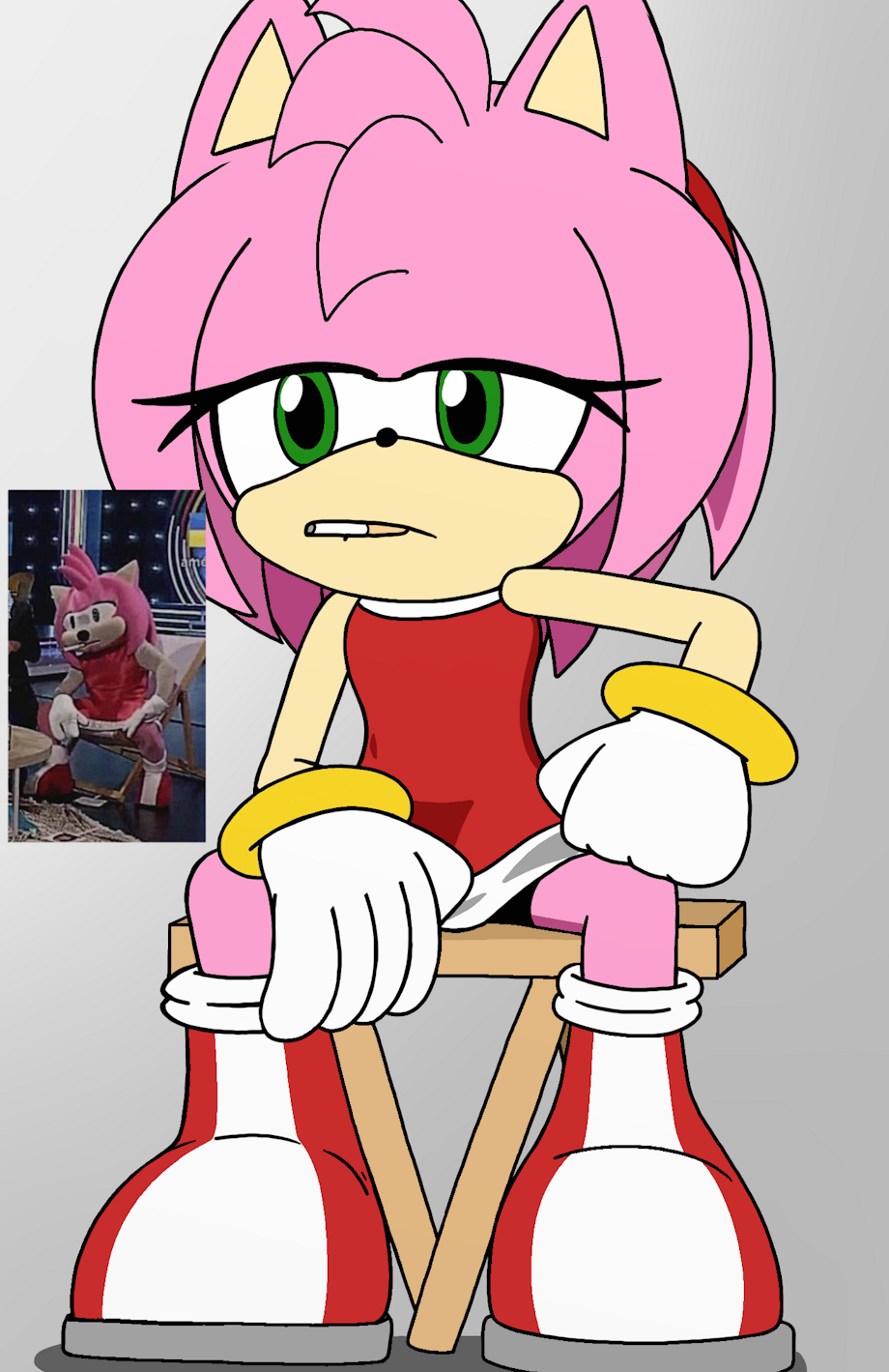 I saw this image on Twitter (I'm still calling it Twitter...) about a month ago and saw artist draw up their own variations of it. It looks like a show that was televised on a South American program which had someone in an Amy fursuit casually smoking a cigarette. Seeing how funny this was I decided to draw it up myself.