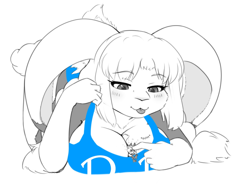 That is one squishy Chrome. Great going on depicting her chest up against the ground like that! It'll be a whole new kind of tight fit in there hahah. That's a powerful teasyface too! Fingerpokes are always a cute. I like the paw and tail up in the air in the back from the rest of the pose as well.