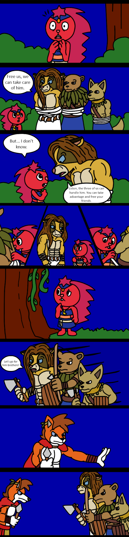 This pic is a collab I made with my friend sirinathehedgehog. This is a comic that came to mind based on an idea I had for a fic from another fandom where it would show what it would be like if the characters of a fandom x lived in a tribal environment. Also, this is a crossover comic between Sonic The Hedgehog, Star Fox, Happy Tree Friends, Zootopia, Aggretsuko, Beastars, and BNA Brand New Animal. Although there are other fandoms included here. This is the thirty-fourth page.