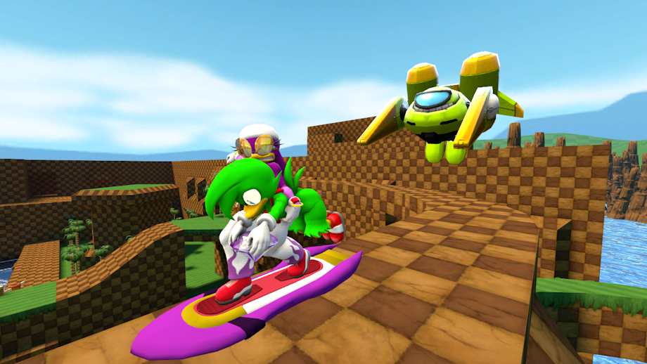 Jet and Tiara are racing each other. Wave and Bean are being chased by a badnik. (All because of the actions of someone so daffy.) Sasha watches Storm training.