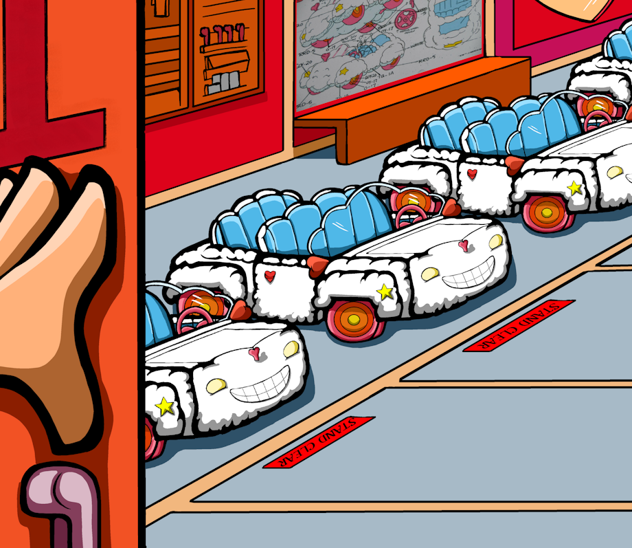 The flattened cloud-car form makes them look immeasurably more like cars then the fluffy cartoon style ever did. A very quality page.