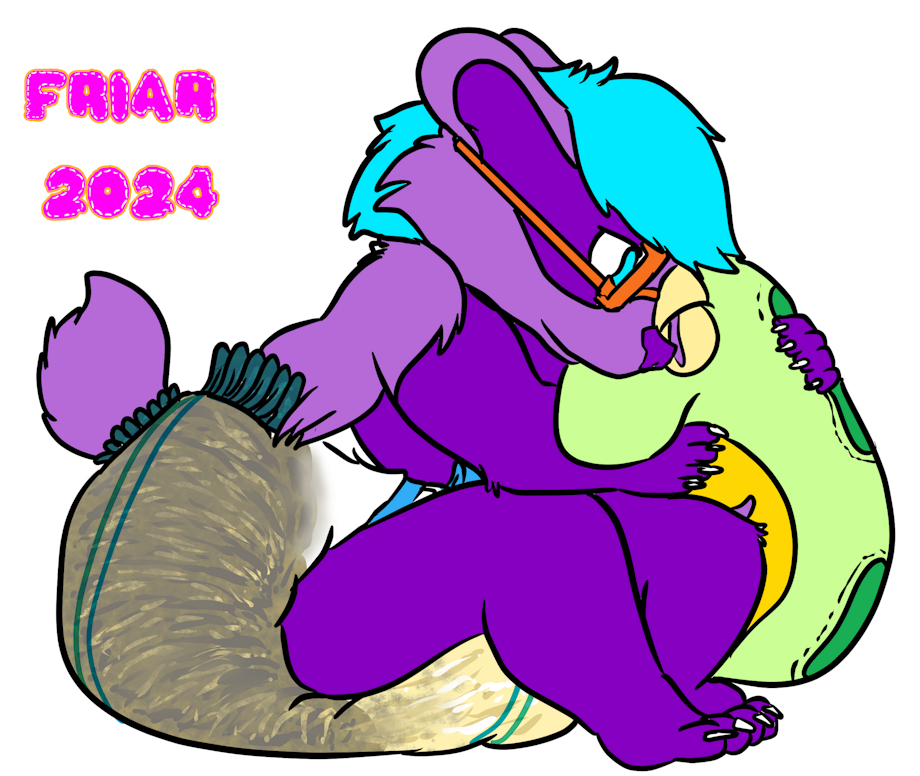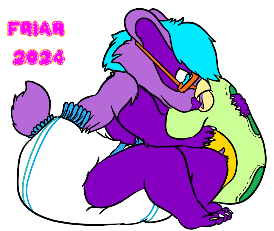 Illustration of Everett the wet and messy diapered badger snuggling his snake plushie on the floor next to his bed looking slightly sad.