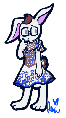 i went with a brown, white, and blue scheme, because they are my fav 3 colours together. the dress and scarf i own, so i based them on that. and i did a bunny because i really like themmm and i thought it would fit U A U ) i also tried to keep the design simple, but unique. i hope i succeeded.