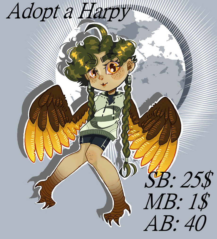 Harpy Adoption ♥ In SB winner includes an extra SFW/NSFW art of your choice ♥ 24 Hours after the last bid the auction closes and the highest bidder wins ♥ The files will be sent by email and can be transferred to your ToyHouse in case you have one :3 ♥ All rights will be yours ♥