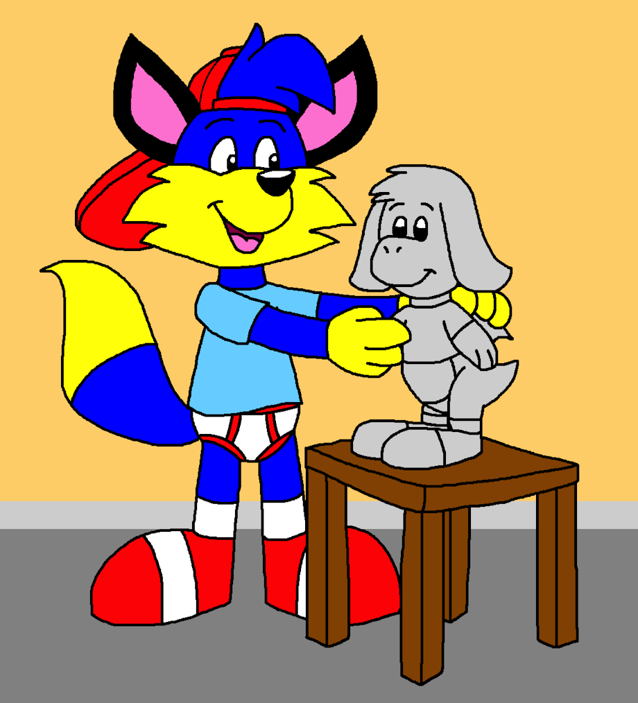 Alex the Fox's Hands in the Water and Getting Wet and Making a Model of Patch the Dinodog.
