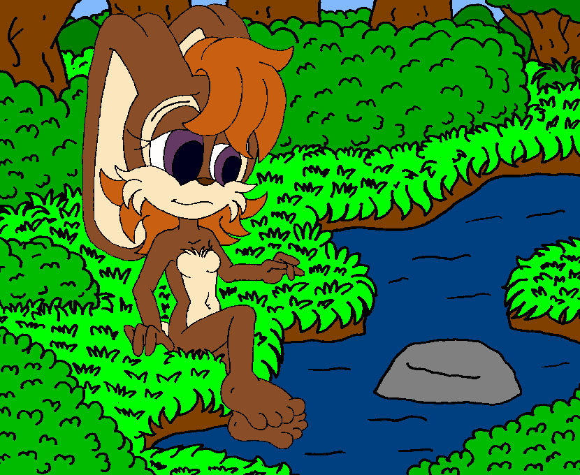 A BUNNIE BY A STREAM