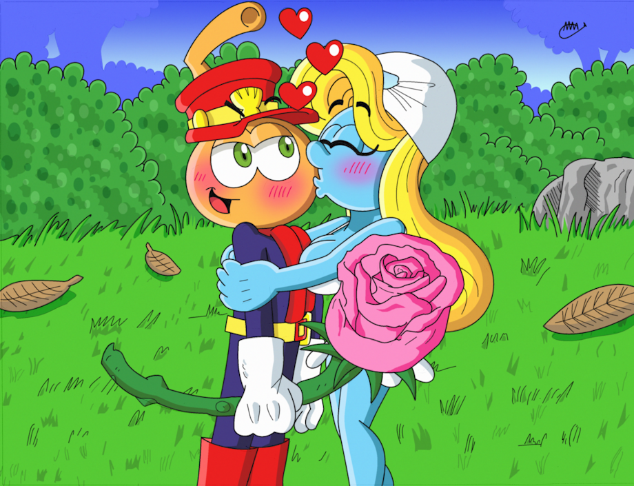 Smurfette with her new boyfriend, Corky. She's happy with her new rose.