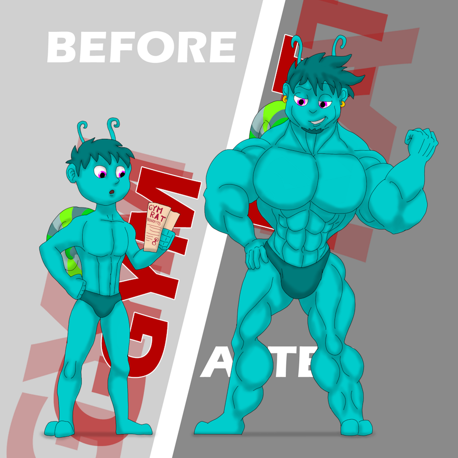 , who asked me to draw her OC Owen O'Slime undergoing muscle growth.