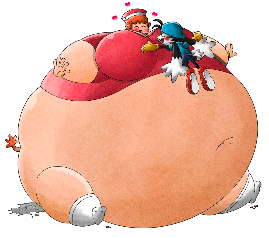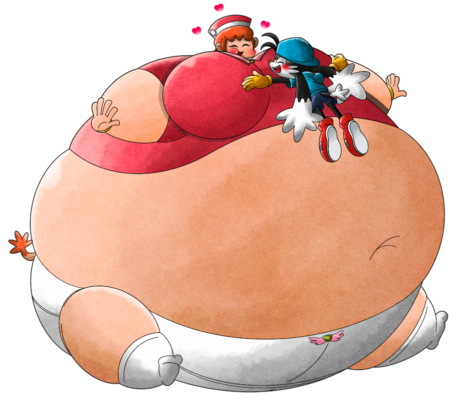 they look super cute together and i love how both sides of this turned out!!!! klonoa layin down on his beloved blimp and gigglin while bouncin around in her blimpy boobs,,,,,