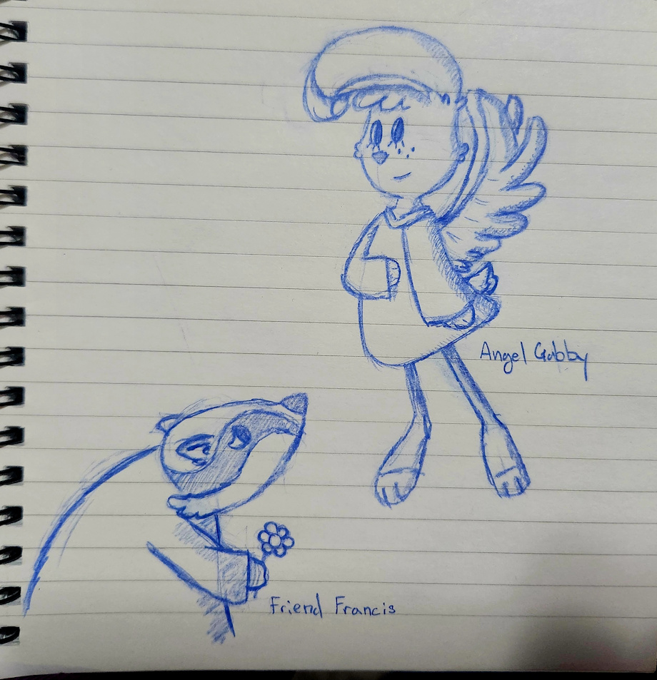 While at a Dungeons & Dragons game I was at, I doodled up this little sketch of Angel Gabby and Friend Francis.