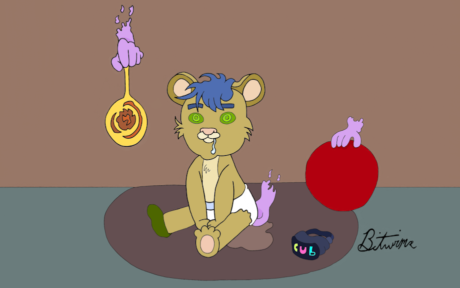Mateo has had enough of this potty training non sense. He clearly isn't ready for it and stands fast in his belief that he's still a cub and wants nothing to do with the potty so much so that he's flooded his diaper to the point of leaking. Better get this cub cleaned up before he really throws a tantrum and does some a little more worse than writing on the walls and soaking his pamps