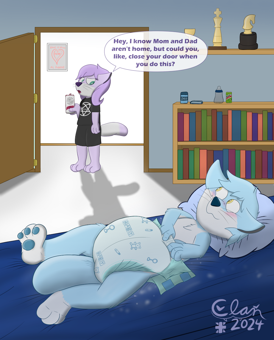 Do you guys remember this goober from Midwest? This is Lance and his sister, Lisa. Lisa discovered his diapers and was completely cool with it, but she still has to set boundaries. Silly Lance.