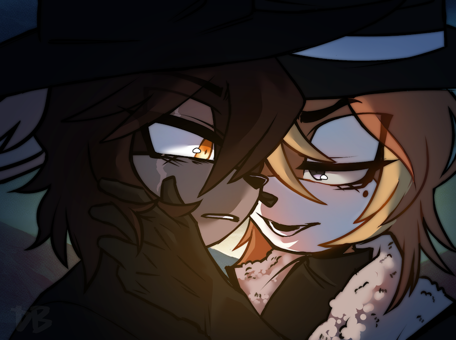i tend to ship auburne with everyone, and one of my most recent favorites has been having him with another cowboy named Tajin. hes a more reserved and traditional type; he doesnt really understand what being transgender means. auburne isnt a very patient teacher either, but he enjoys teasing tajin immensely.