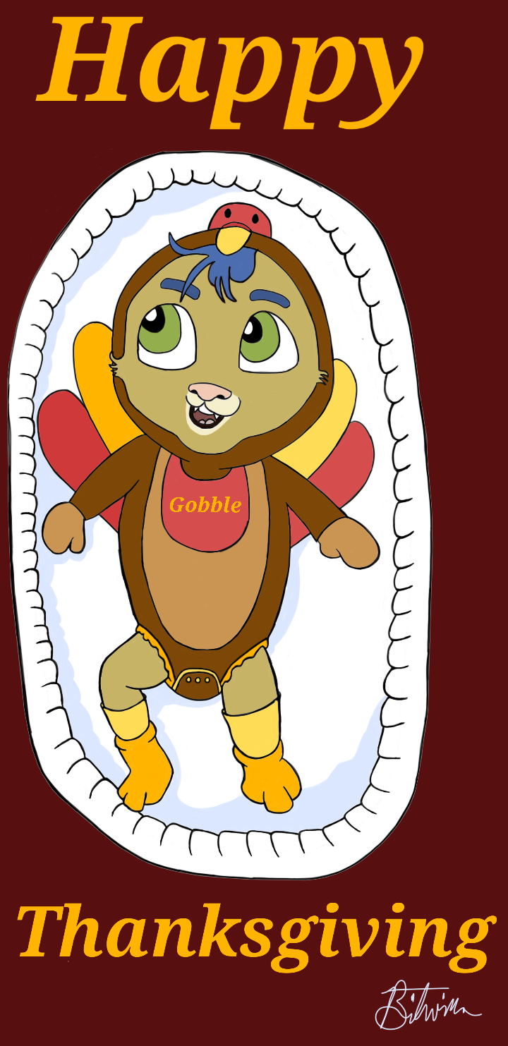 New art for Thanksgiving. Inspired by @MuffinScribbles turkey onesie ych. I wanted to try my hand at creating a turkey day piece featuring Mateo. This little gobbler looks like he's all ready for nom noms.