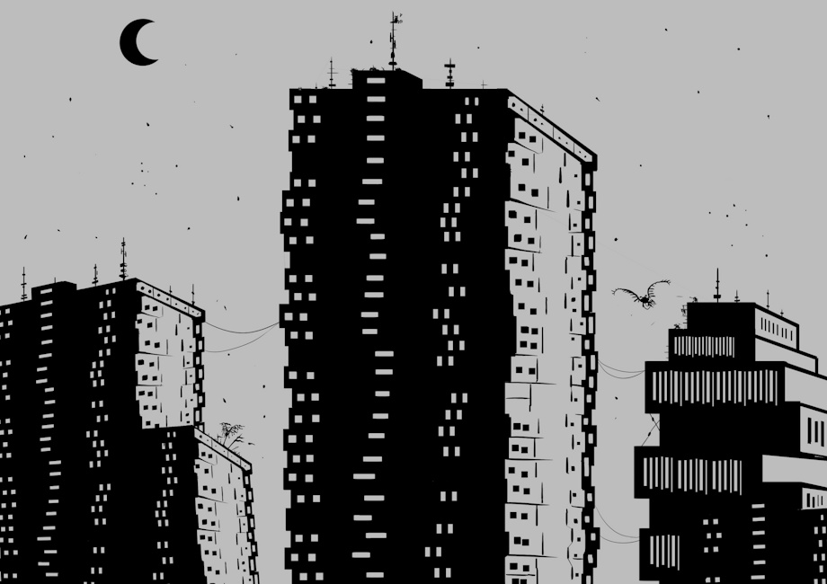I've been interested in drawing monotone art for a while. One of my old works is the metropolis from RainWorld.