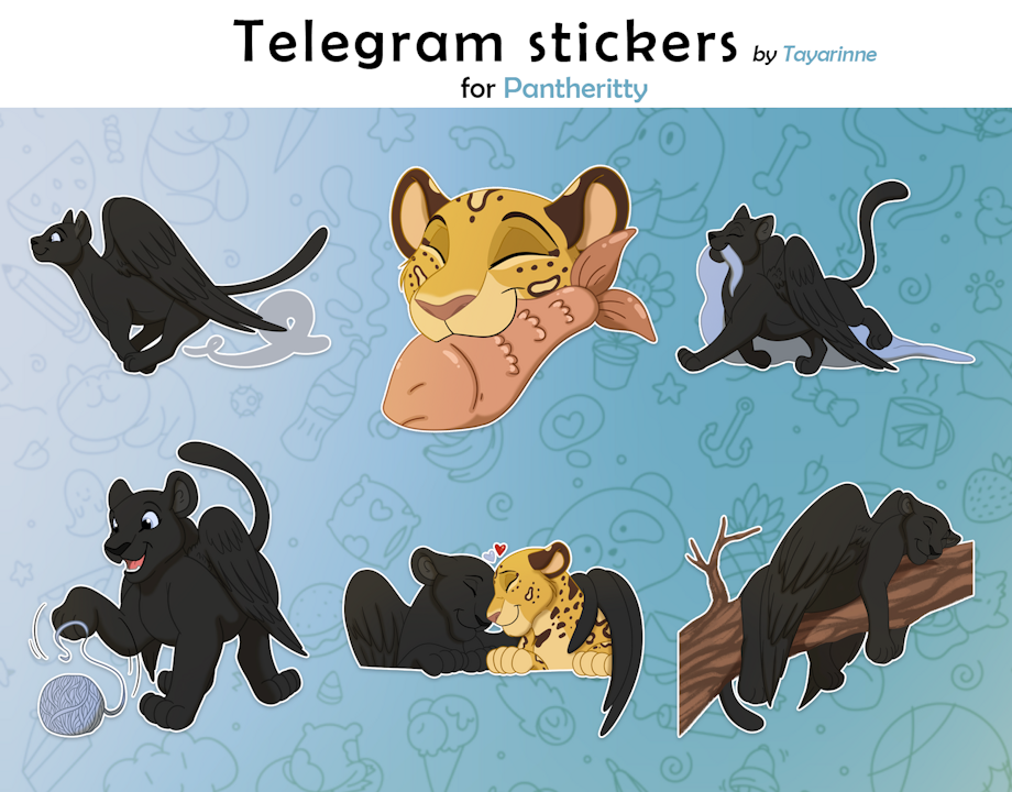 Another pack of telegram stickers for ✨Pantheritty! Thank you so much for commissioning me! 💛