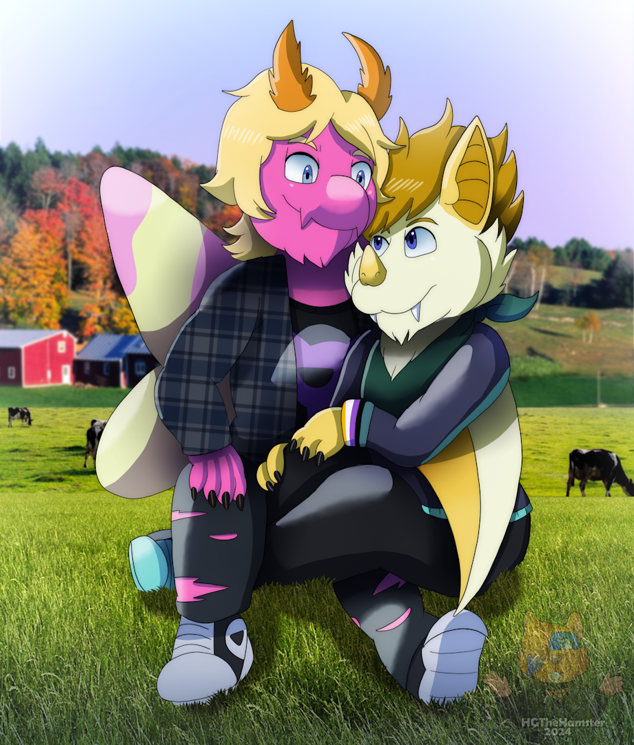 An art trade done for https://www.furaffinity.net/user/quaquaval of their OC's Marshall and Zack. Particularly they wanted them sitting out together around a farm. Farms are one of my favorite things to photomatte. All stock images came from Unsplash or Gettyimages